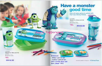 Adakah anda peminat "Mike" dan "Sulley"? Jika ya, pastikan anda tidak ketinggalan mengikuti tayangan filem animasi ini. Anda juga boleh mendapatkan Monster Inc. Lunch Set keluaran Tupperware dari kami.